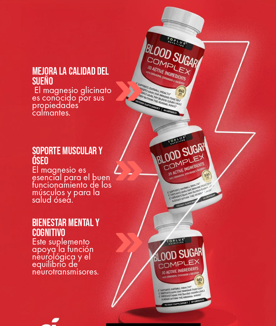 El Blood Sugar Complex es un suplemento dietario que proporciona soporte nutricional para ayudar a mantener los niveles de glucosa ya dentro del rango normal. Está diseñado para cualquier persona que busque apoyar un metabolismo saludable, controlar los antojos de azúcar, mantener una energía constante y alcanzar metas de fitness. Es ideal para quienes tienen antecedentes familiares de problemas metabólicos o para atletas que buscan optimizar el uso de energía.