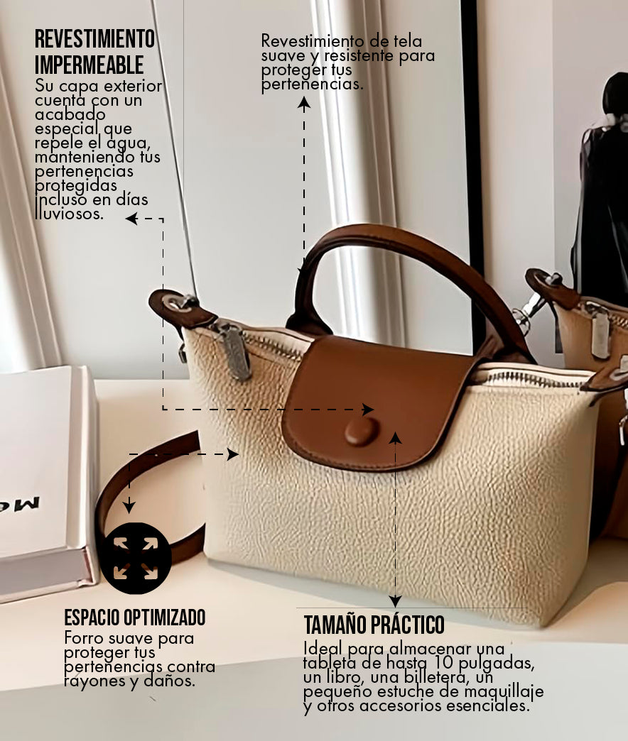de las usuarias que lo usan a diario elogian la practicidad del bolso, mencionando que es lo suficientemente espacioso para sus esenciales, pero a la vez ligero y cómodo. Esto resalta el equilibrio perfecto entre funcionalidad y estilo.