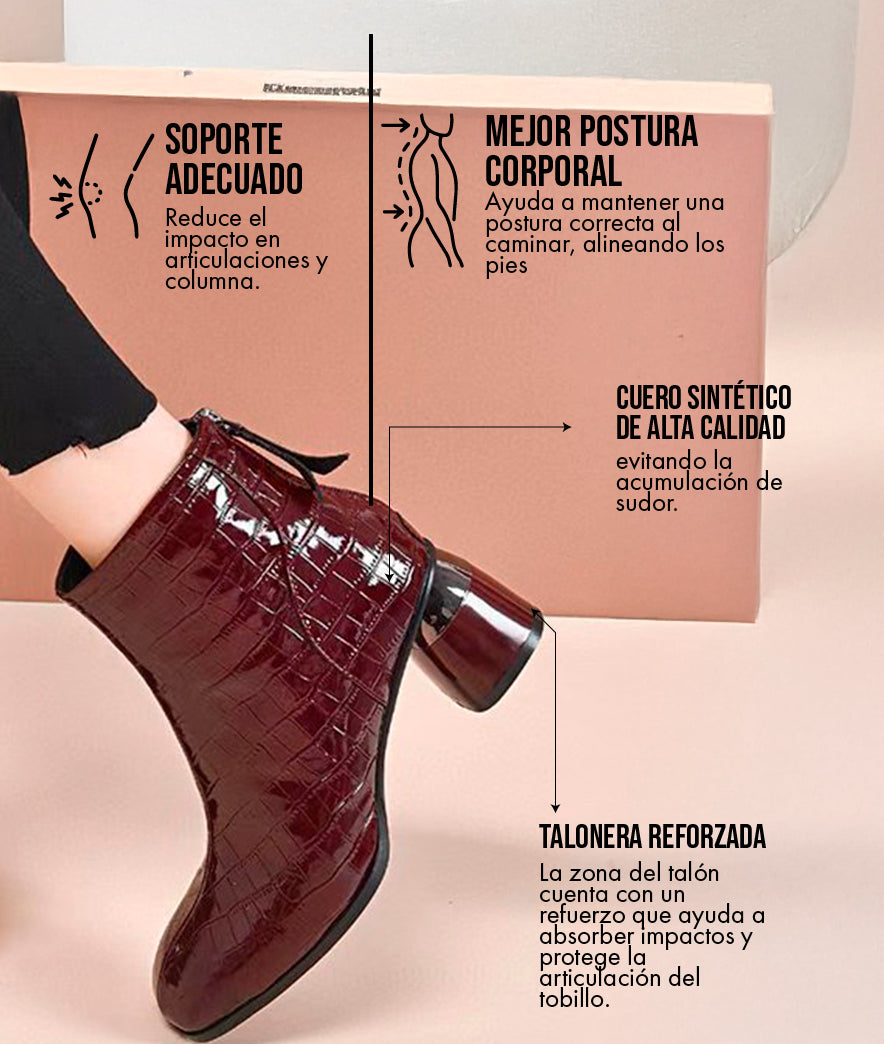 El tacón tiene una altura de 5 cm, considerada la medida ideal por podólogos para mantener una postura saludable sin sacrificar la estética.