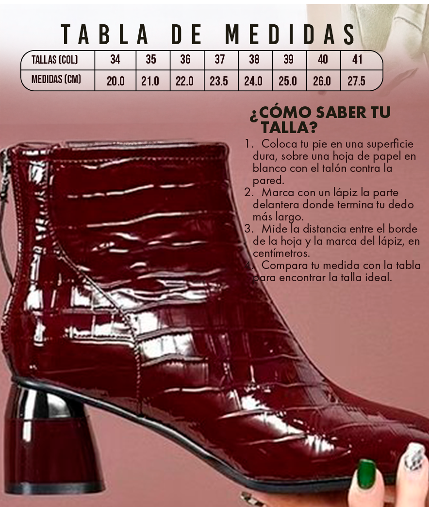 Nuestra horma es estándar colombiana. Sin embargo, si tienes el pie muy ancho o planeas usarlas con medias muy gruesas, recomendamos pedir una talla adicional para máxima comodidad.
