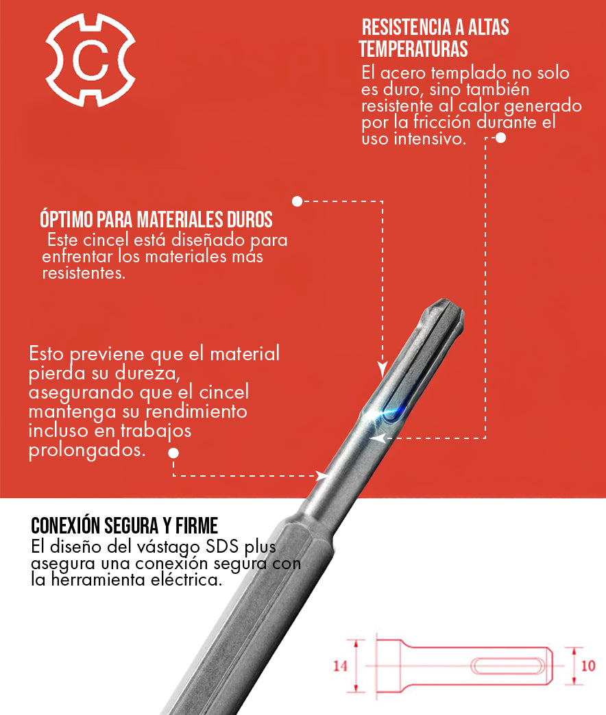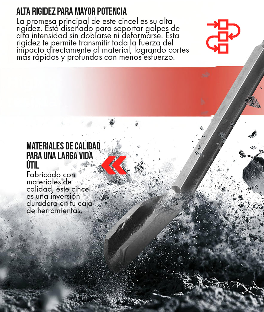 Sí, el cincel cuenta con un vástago de diseño SDS plus, lo que lo hace compatible con la gran mayoría de los martillos perforadores y rotativos del mercado que utilizan este sistema de sujeción. Simplemente insértalo en el mandril de la herramienta para un ajuste seguro.