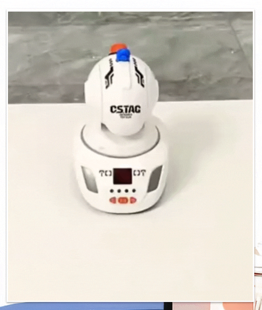 El proyector es muy fácil de usar. Solo tienes que insertar una de las tarjetas de proyección en la ranura, apuntar el proyector a una pared o superficie lisa, y encenderlo. Proyectará figuras en movimiento para que los jugadores las apunten.