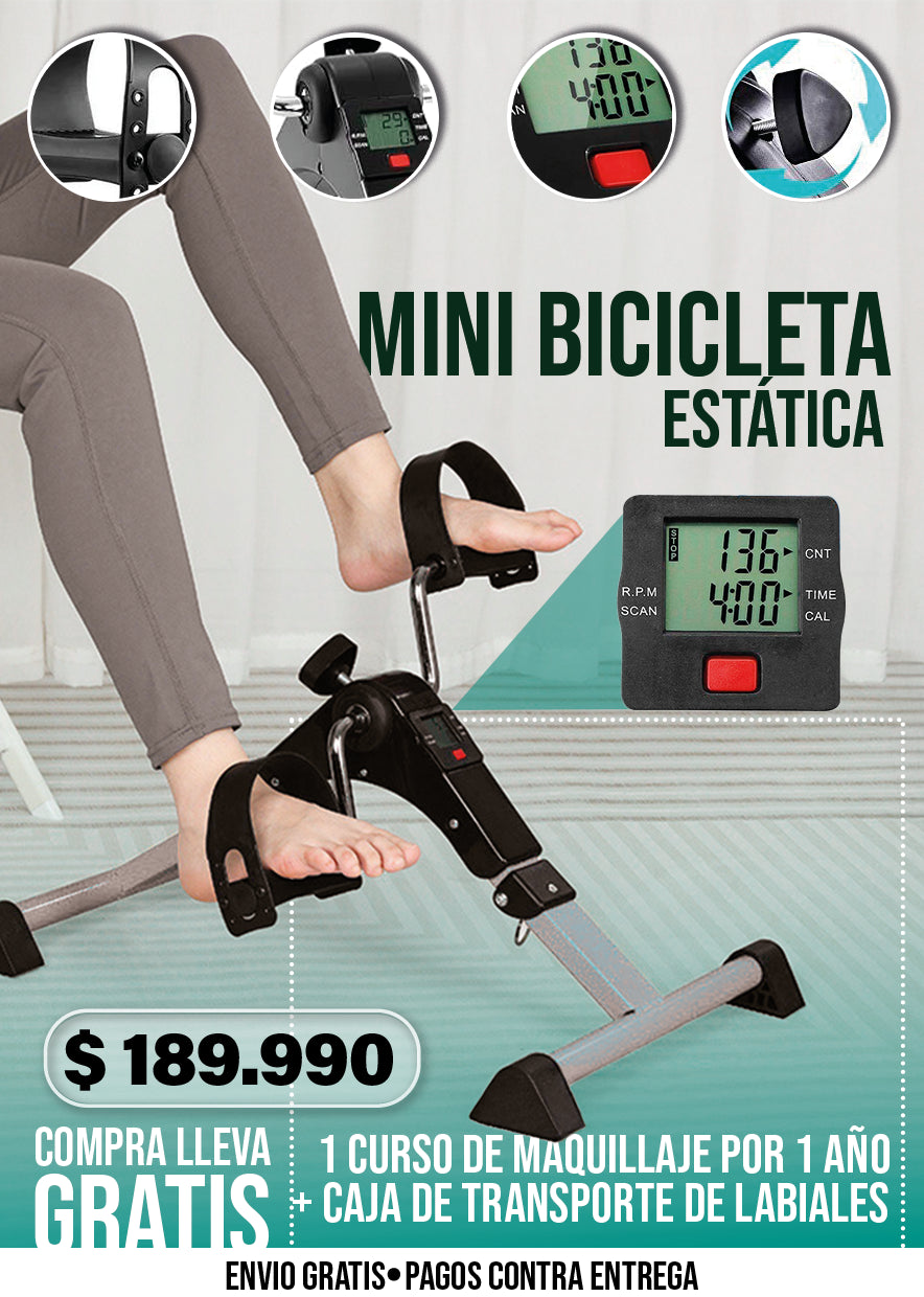 El Mini Pedaleador Pro está diseñado para realizar un ejercicio de bajo impacto, ideal para tonificar y fortalecer los músculos de las piernas y los brazos. Puedes usarlo bajo tu escritorio para pedalear mientras trabajas, o colocarlo sobre una mesa para ejercitar tus brazos. Es excelente para mejorar la circulación, aumentar la resistencia y quemar calorías de forma moderada. Es una herramienta perfecta para complementar una vida activa o para iniciar una rutina de ejercicio suave.