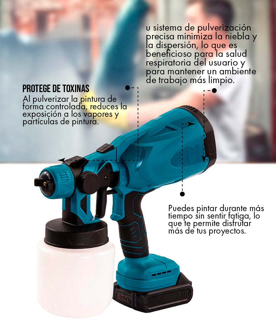 El pulverizador BIAONIU™ es compatible con una amplia variedad de pinturas a base de agua y solventes, incluyendo pintura de látex, esmaltes, lacas, selladores y barnices. Para obtener los mejores resultados, es importante diluir la pintura según las instrucciones del fabricante y del pulverizador, y realizar una prueba de viscosidad para asegurar un flujo constante y uniforme.