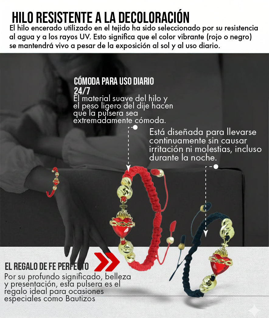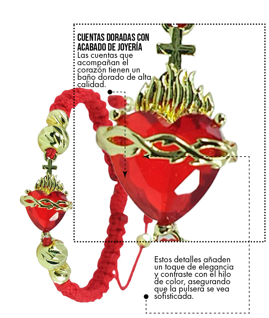 El material de las cuentas y la estructura del corazón llevan un baño dorado de alta resistencia. Si bien no es oro macizo, utilizamos un proceso de recubrimiento que lo hace más duradero que el baño común. Con el cuidado adecuado (evitar la exposición directa y prolongada a perfumes o cloro), el color dorado se mantendrá brillante por mucho tiempo.