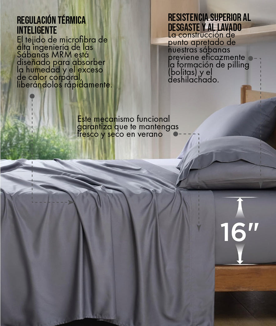 Sí, absolutamente. La microfibra utilizada en las Sábanas MRM está diseñada con una estructura de poros abiertos que facilita la circulación del aire. Esto le permite absorber el sudor y liberar la humedad rápidamente (efecto wicking), asegurando que el cuerpo se mantenga fresco y seco durante las noches calurosas, optimizando la temperatura para un descanso profundo.