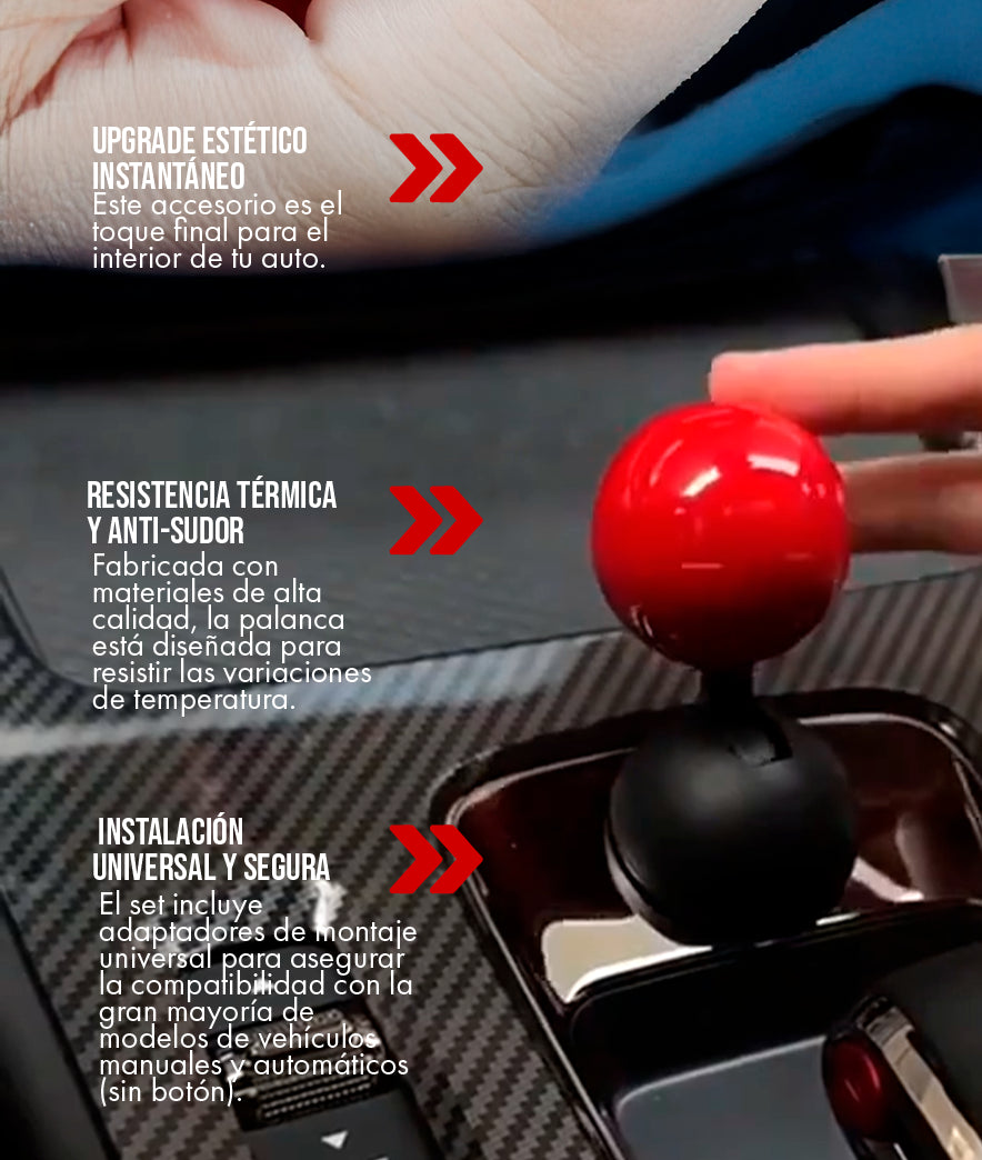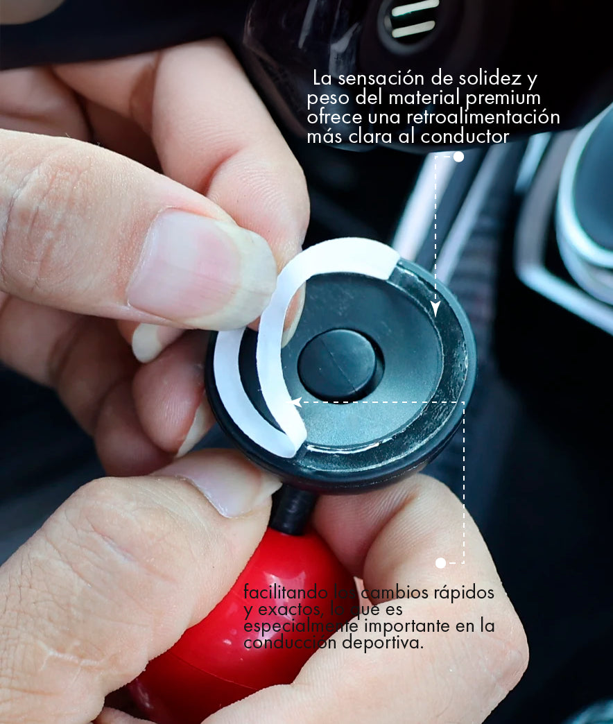 La palanca se vende con un kit de adaptadores universales. Esto garantiza la compatibilidad con la gran mayoría de vehículos con transmisión manual o automática (sin botón en la palanca). El kit incluye adaptadores de diferentes diámetros para ajustarse al vástago de tu auto.