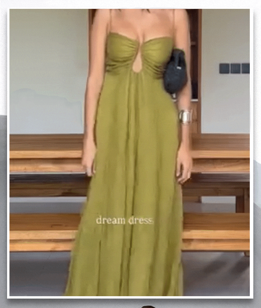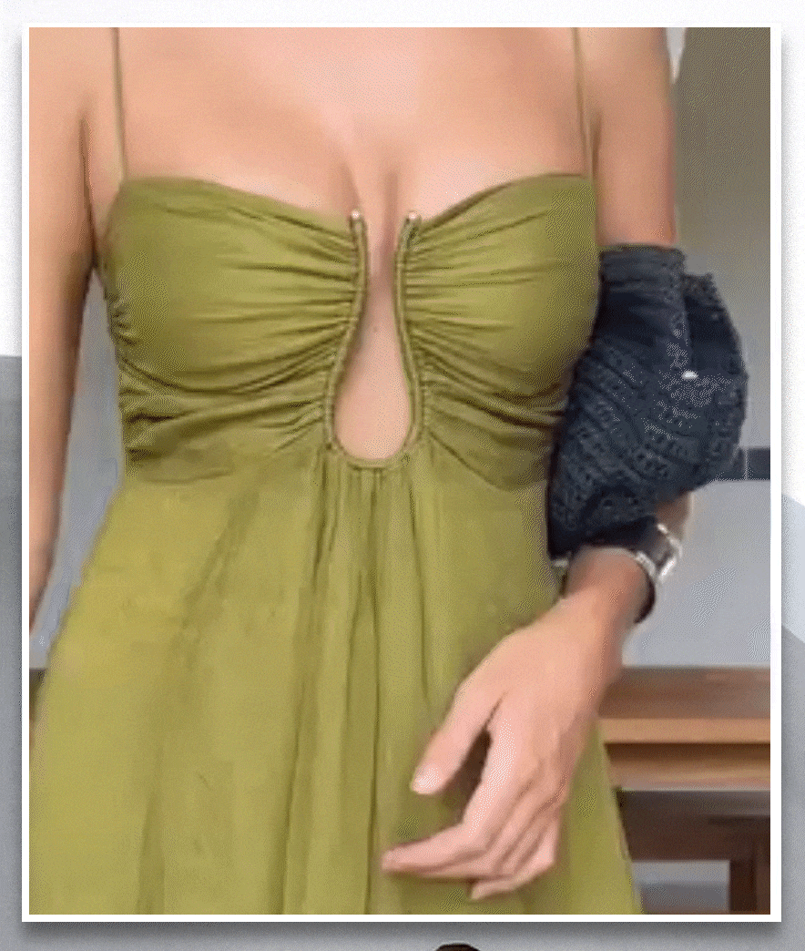 El cut-out en la cintura es sutil y elegante. Está diseñado para dar un toque sexy sin revelar demasiado. Es un detalle de moda que le da un toque único y moderno al vestido.