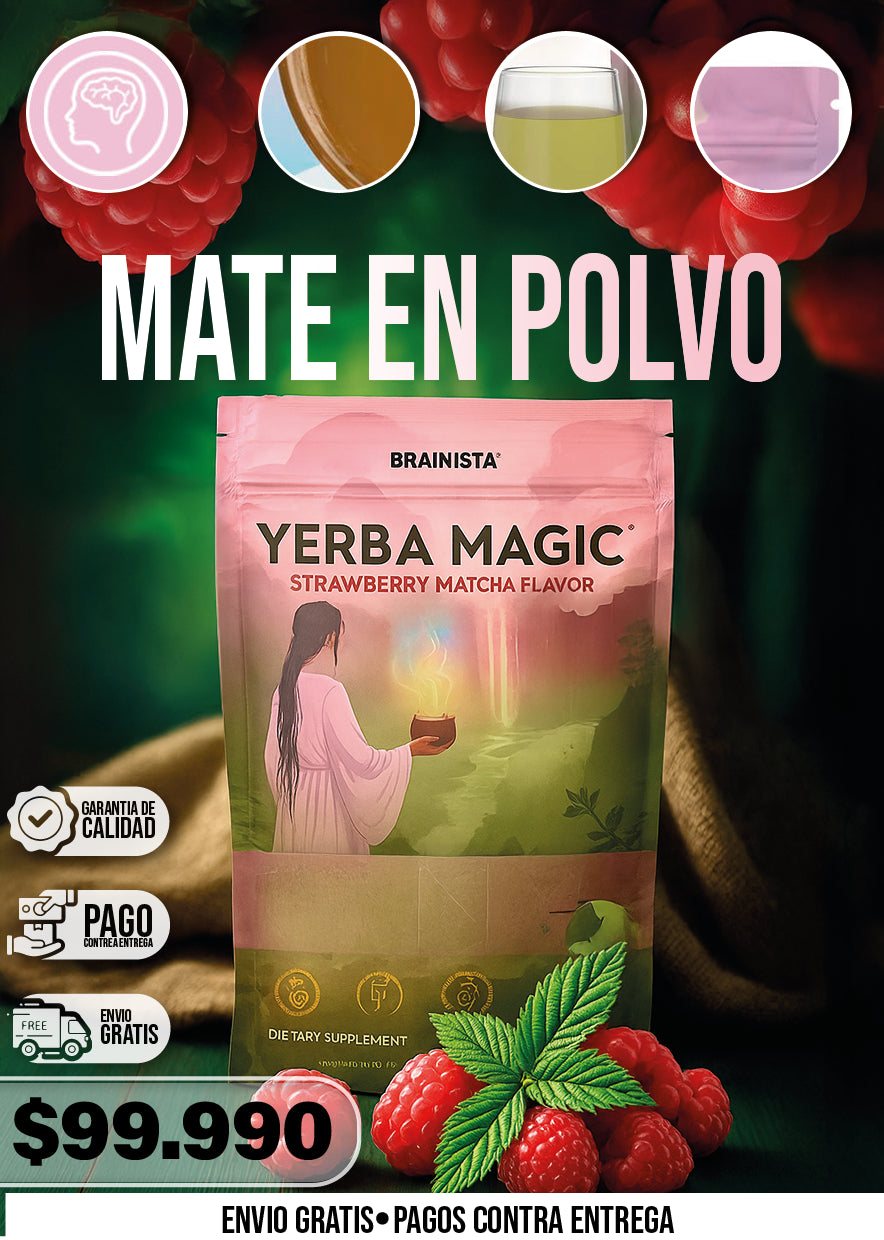 Yerba Magic es un suplemento en polvo con sabor a fresa matcha, diseñado para brindar energía, claridad mental y apoyo a la salud digestiva. Su fórmula única combina extracto de yerba mate, potenciadores cerebrales y una mezcla de prebióticos y probióticos.